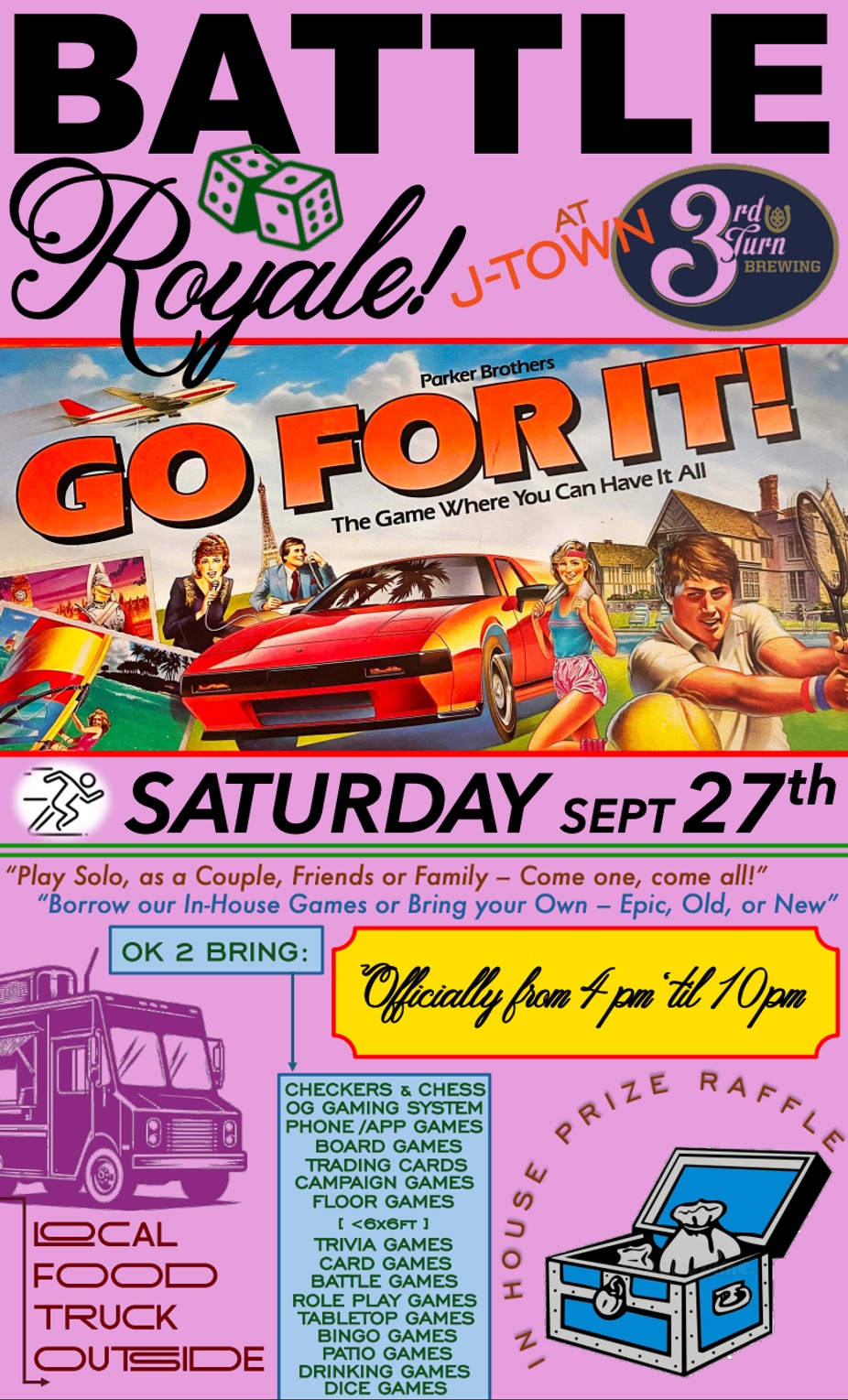3rd Turn Brewing would be honored to provide our services for your next event, party, anniversary, birthday, family or class reunion or whatever the occasion is. Each event will be booked with our management team and someone from our facility will be happy to walk you through our options. We have large table formats that require no reservations most of the time but if you are looking for a positive space rental we would be happy to share our pricing sheets with you. Space rentals usually start at 8 or more people and can be as large as 50. Larger offerings are possible on special request.